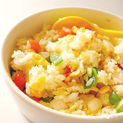 15.蛋炒饭 一、材料 鸡蛋、洋葱、青红椒、玉米粒、盐、胡椒粉 二、步骤 1、鸡蛋打散炒成鸡蛋碎 2、洋葱爆锅,加青红椒丁和玉米粒炒, 3、再加冷米饭炒匀。 4、最后加调料,除了盐和白胡椒粉之外,特意加一点咖哩粉,香得很特别呢。