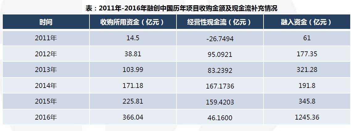 值得一提的是,从2011年至2016年,融创收购项目所用资金逐年增加,2016年为366亿元。