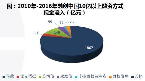 根据同策研究机构数据显示,从2010年到2016年中期,融创中国10亿元以上的融资活动现金流入,主要来自借款(含银行)、公司债及优先票据等融资渠道。